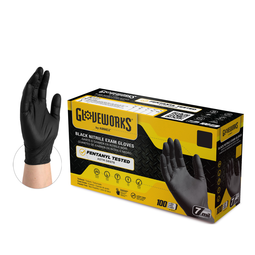 SM 7MIL NIT BLACK PF TEXT EXAM GLOVE 10BX/100/CS GWBEN42100