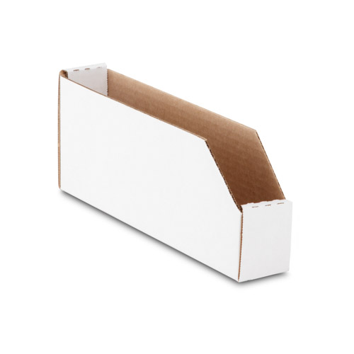 Corrugated, die-cut. 32 ECT #3 white outside. Used for organized storage of parts on standard shelf depths. Rigid self-locking construction. Until ready for use they store flat. Assemble in seconds. All dimensions are outside dimensions.