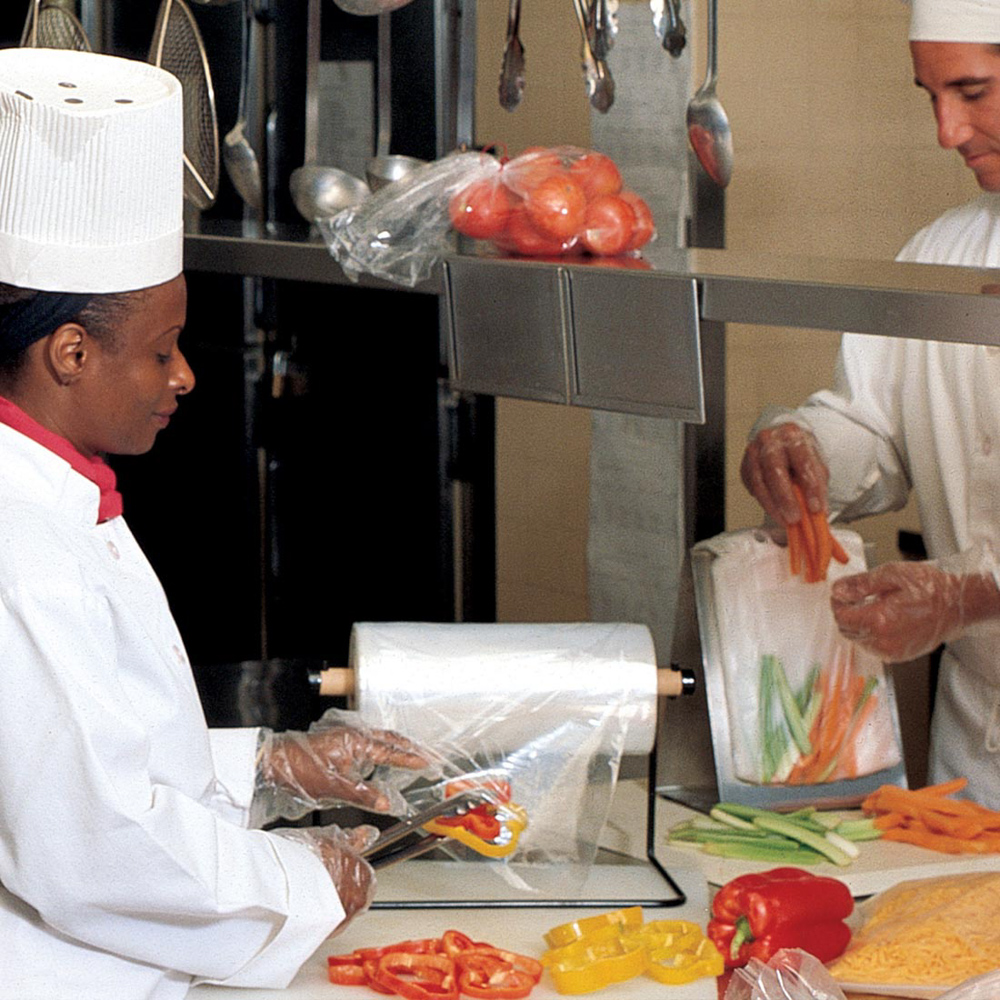 Bags on Rolls are convenient in dispensing an individual bag at a manual packing workstation where the roll may be placed on a wall or other location to save table top space. Some rolls feature vertical perforations (designated with a "VP") for easy opening.