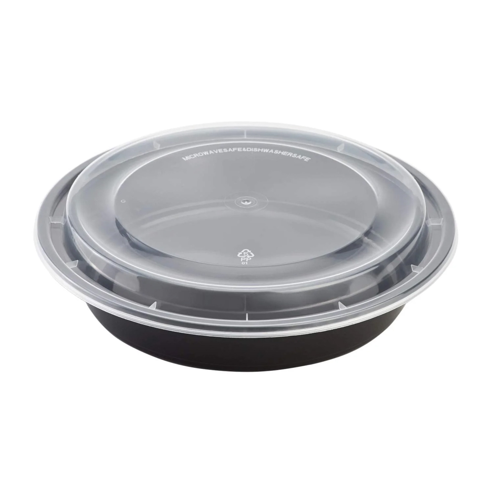 32OZ BLK/CLR ROUND MICRO BOWL W/ LID 150SET/CS IMFCR32