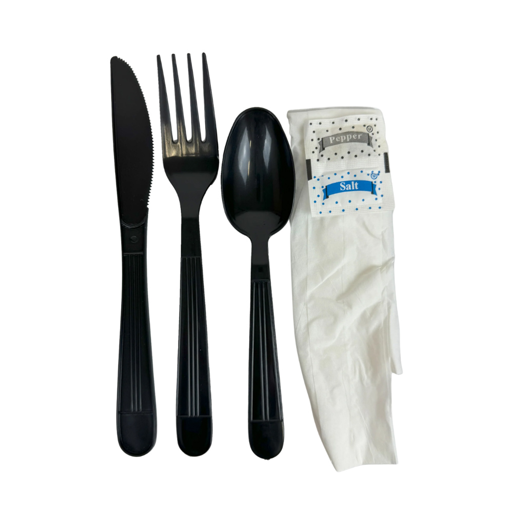 HVY WEIGHT PP BLK CUTLERY KIT K/F/TSP/NPKN/S&P 250/CS
