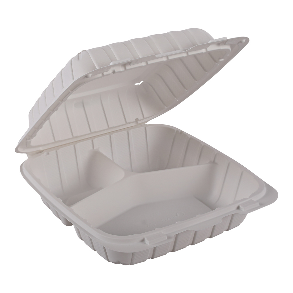 8X8X3 WHT MFPP 3 COMP HINGED FOOD CONT 150/CS EPPHL-83