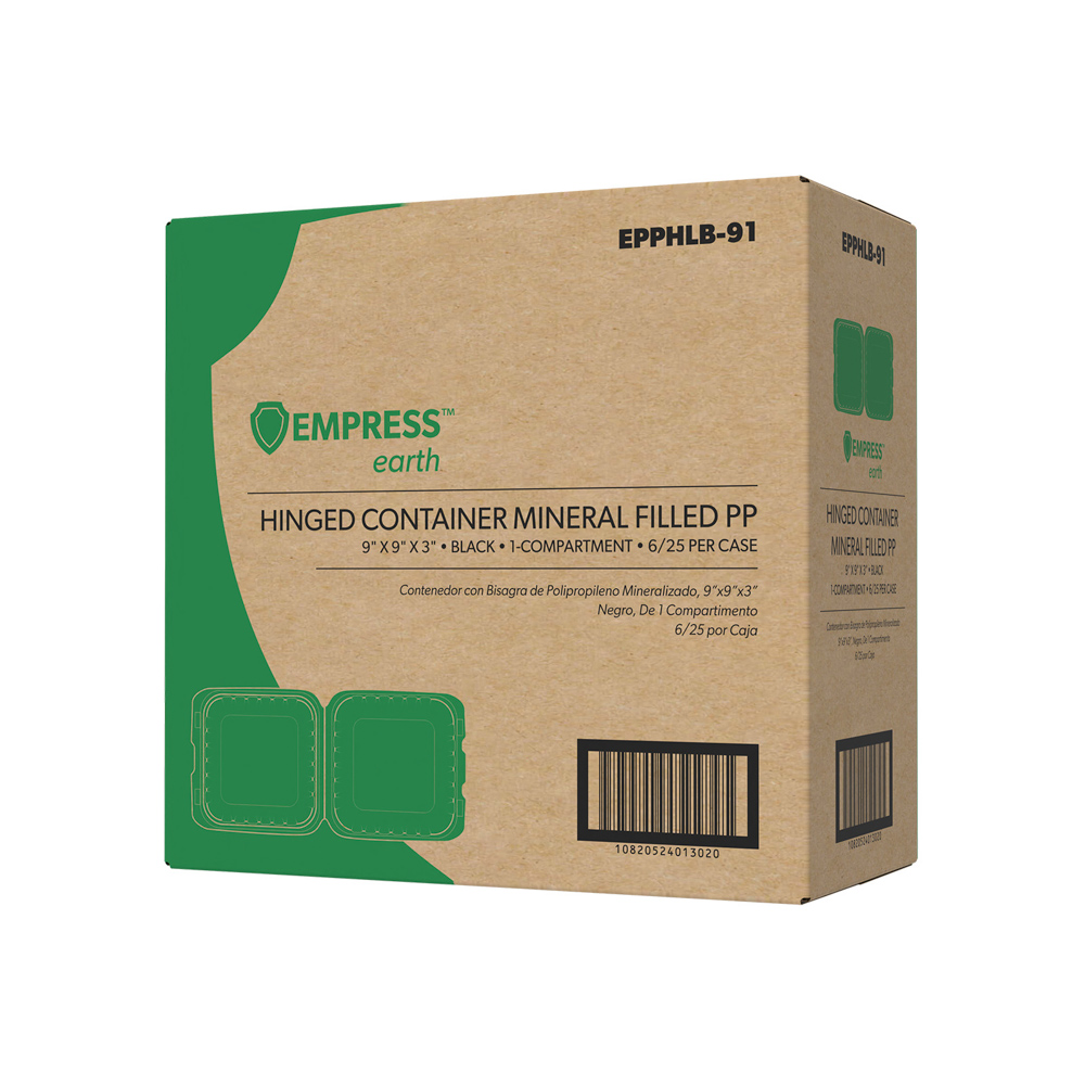 9X9 BLK 1-COMP MFPP HINGED CONTAINER 12/25/CS EPPHLB91