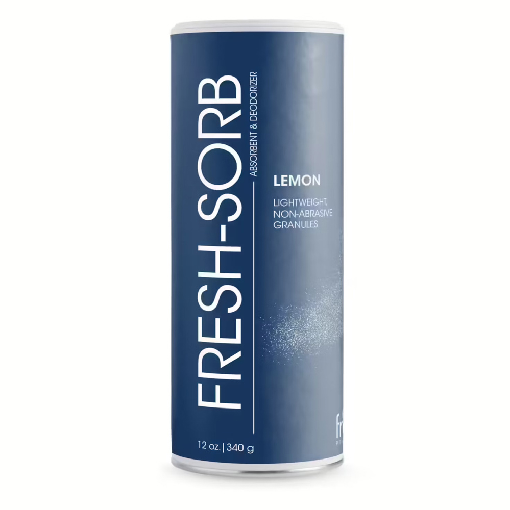 Fresh-Sorb 12 oz Canister is a concentrated absorbent powder designed to turn liquid spills into a semi-solid gel for fast, safe cleanup. It absorbs up to 60 times its weight almost immediately, and up to 400 times its weight within two minutes. Ideal for use in kitchens, manufacturing areas, hospitals and other commercial settings.