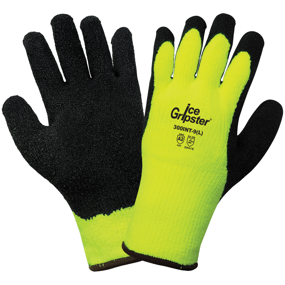 ICE GRIPSTER HV YELLOW RUBBER DIP GLOVE LG 6DZ/CS 300INT-9