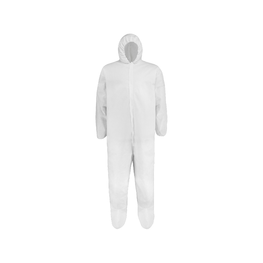 XL 55GRAM WHITE COVERALL DSPSBL NON WOVEN W/HOOD & BOOTS 25/CS