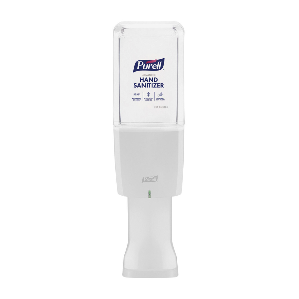 White Touch-Free Dispenser for PURELL ES10 1200 mL Hand Sanitizer refills. A fresh battery is built into every refill, so you never have to replace batteries under normal conditions. The transparent refills make it easy to check product levels and is easy to recycle. The slim design fits in tight spaces and quietly dispensers a rich foam. Available in modern finishes that look great anywhere. The PURELL DISPENSER ADVISOR app offers a data-driven approach to help you manage multiple dispensers. It features industry-leading technology that learns dispenser usage patterns and tells you where to go and when to change the refill. The exclusive app is complimentary with all PURELL ES10 Touch-Free Dispensers.