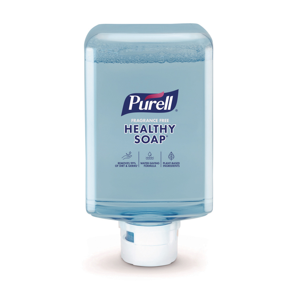 PURELL HEALTHY SOAP With CLEAN RELEASE Technology Fragrance Free Foam. For use in PURELL ES10 Touch-Free Soap Dispensers. Thoughtfully designed for people and the planet, PURELL HEALTHY SOAP with CLEAN RELEASE Technology boosts soap performance by reaching into skin's cracks and crevices 2X better than regular soap to lift and wash away more than 99% of dirt and germs. Made with plant-based ingredients and free of harsh preservatives and antibacterials. Rinses quickly and cleanly, saving water with every wash. In fact, each refill saves an estimated 6 gallons of water compared to regular soap.