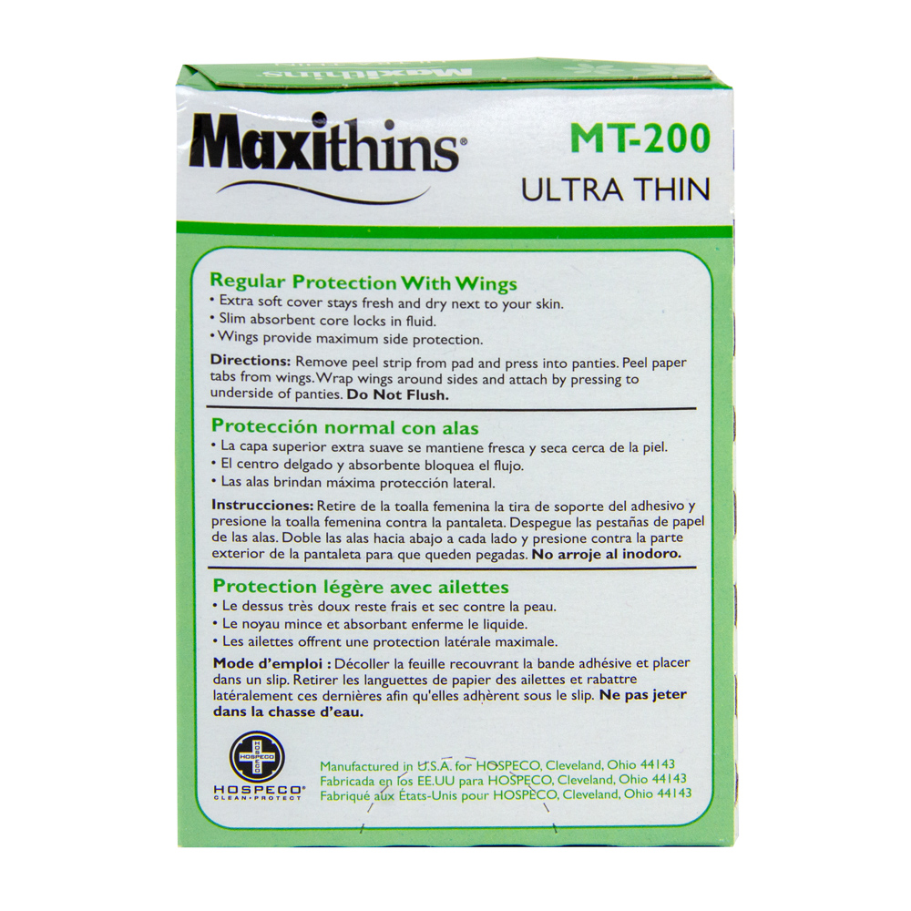 MT-200 ULTRATHIN MAXITHINS PAD W/WINGS IN #4 VEND BX 200BX/C