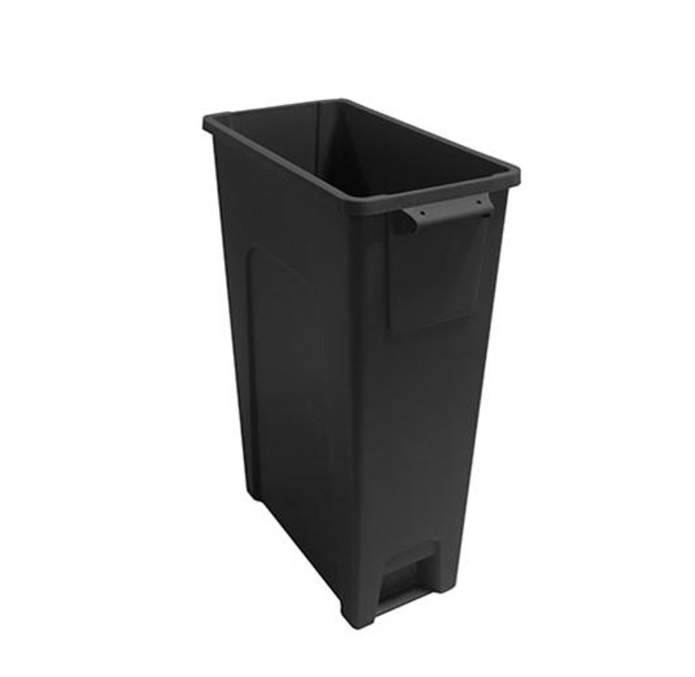 The 23 Gallon Thin Bin is designed for efficient space use and easy waste handling. Its low-profile shape fits tight against walls, while ergonomic handles and a built-in footstep make bag changes quicker and cleaner. With customizable print areas and innovative air vents, this bin is ideal for modern commercial spaces.