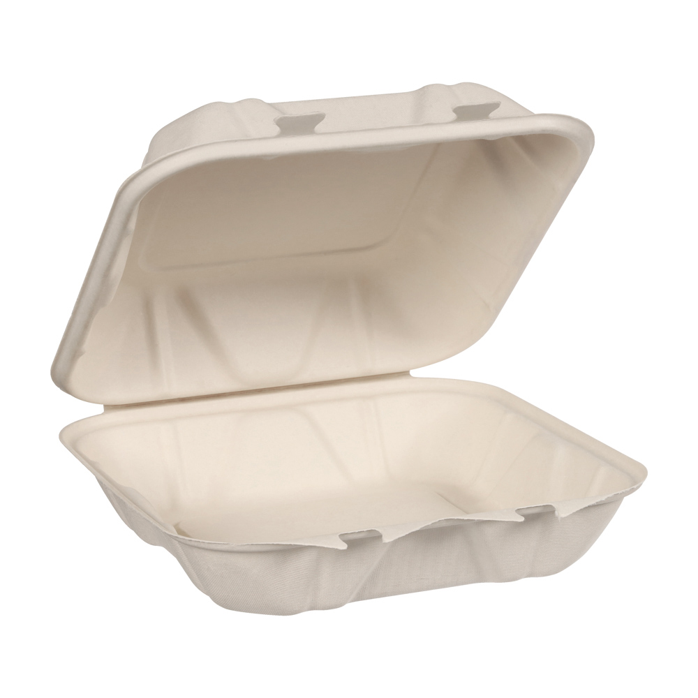 8X8X3 FIBER NATURAL PAPER PRO HINGED CONTAINER 200/CS 26213