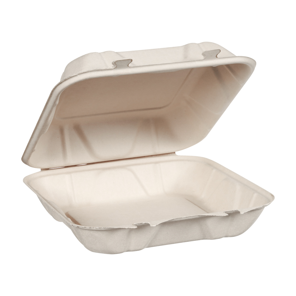 9X9X3 FIBER NATURAL PAPER PRO HINGED CONTAINER 200/CS 26215