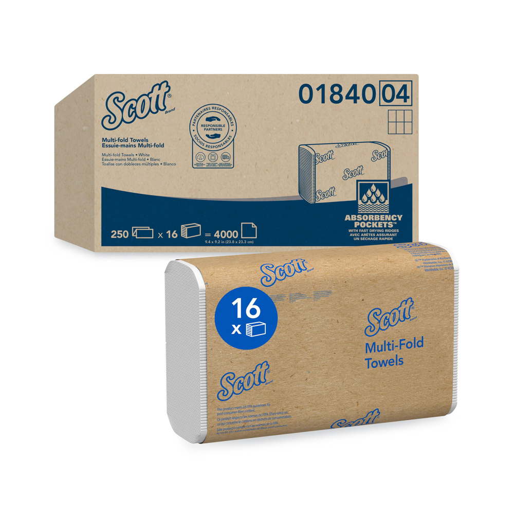 01840 SCOTT WHT M-FOLD TOWEL 9.25X9.4 16PK/250/CS