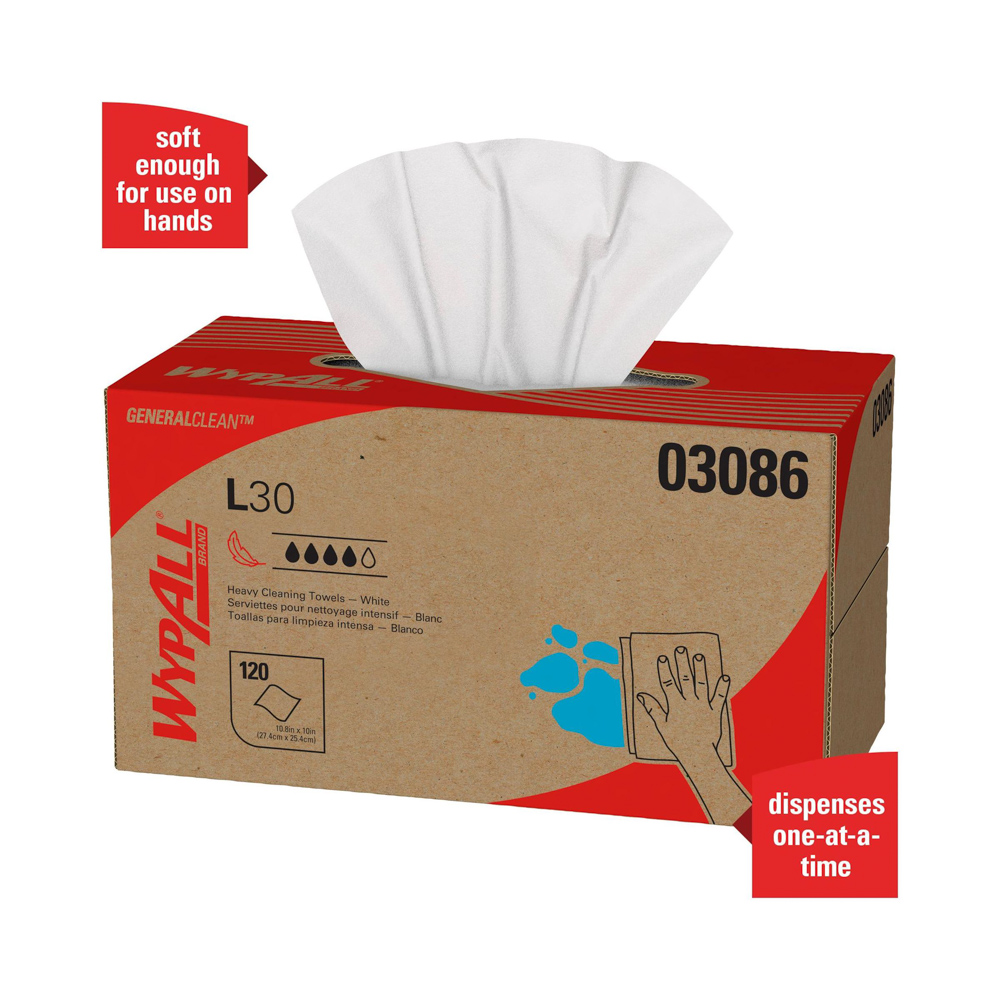 03086 WYPALL L30 WIPER WHITE POP-UP BOX 10X10.8 10/120/CS