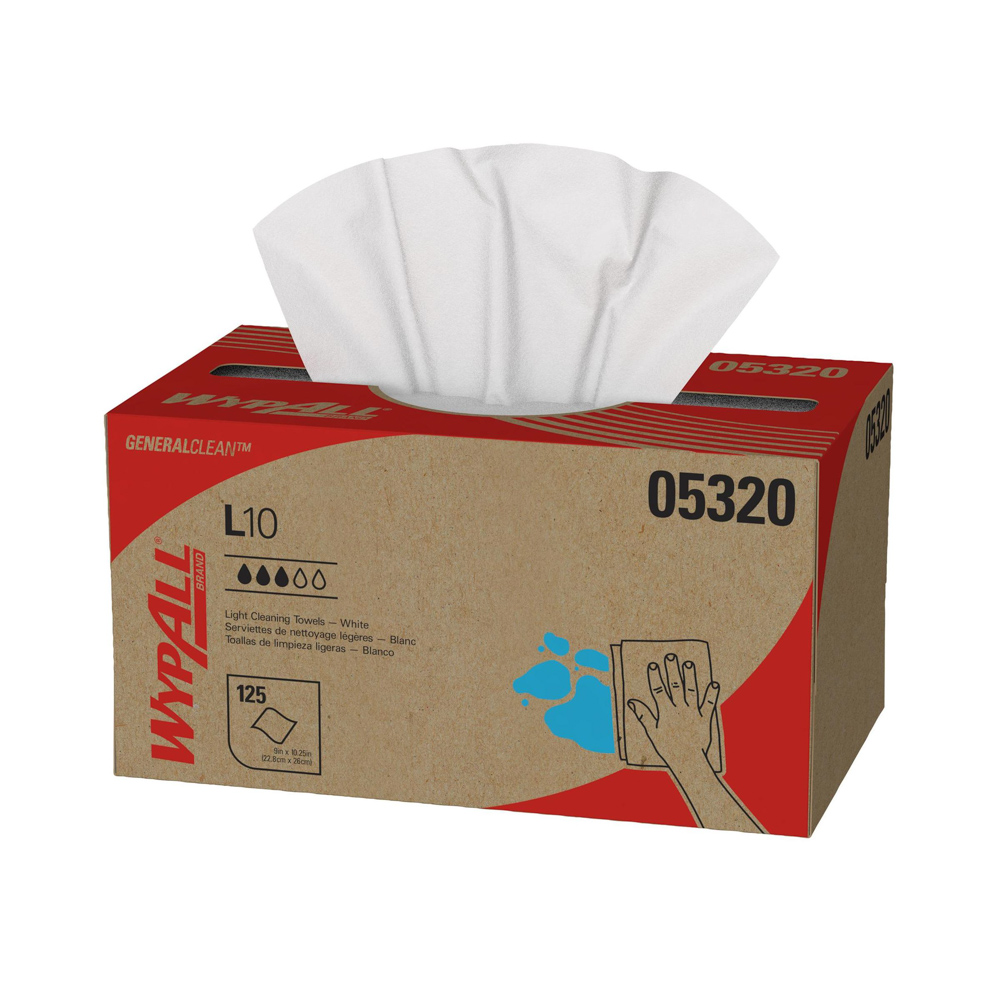 05320 WYPALL L10 UTILTY WIPER WHT 2PLY POPUP 9X10.5 18/125/C