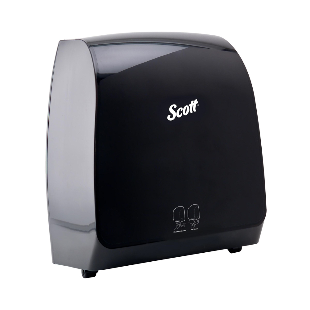 The Scott Pro Automatic Hard Roll Towel Dispenser for Blue Core towels provides efficient, touch-free operation to elevate hand hygiene. With a reliable, 99.99% jam-free design, it delivers consistent, hands-free dispensing to reduce cross-contamination. This sleek, professional dispenser runs quietly, making it ideal for high-traffic environments. Backed by a lifetime warranty, it minimizes service disruptions, reduces user complaints, and saves time and costs in maintenance.