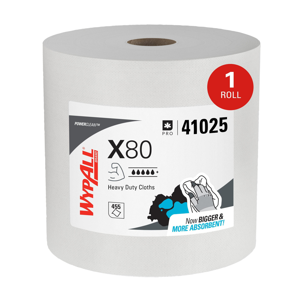 41025 WYPALL POWERCLEAN X80 HEAVY DUTY WIPER CLOTHS, WHITE JUMBO ROLL 12.4X12.2 475/RL | Log In for Price | |