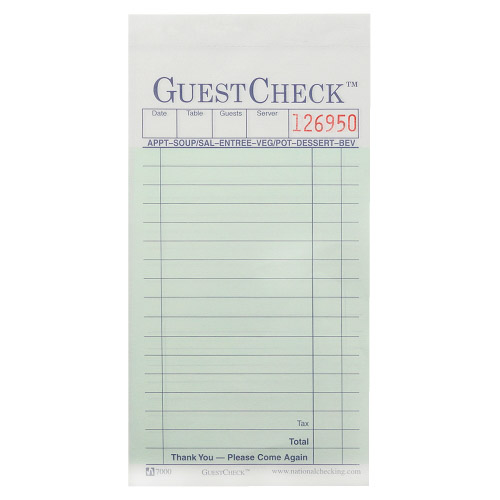 3.5X6.75 GUEST CHECK 1PT GRN 15L 49201910 50/50/CS G3632SP