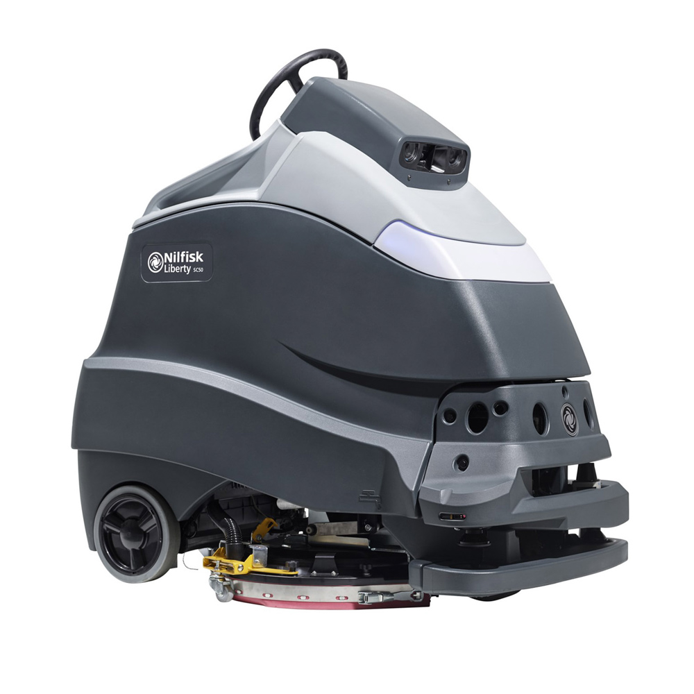 Autonomous floor scrubber for medium to large sized environments. Allows staff to focus on other tasks while the Liberty SC50 scrubs for 6 hours on a single charge. Meet Nilfisk SC50 autonomous scrubber-dryer. After years of developing, testing, refining, live beta testing and more refining, it's ready for the biggest and toughest jobs you can throw at it. In airports, schools, gymnasiums, ballrooms and more, Nilfisk Liberty will get the dirtiest floors clean, any time of day, with no one watching over it.
