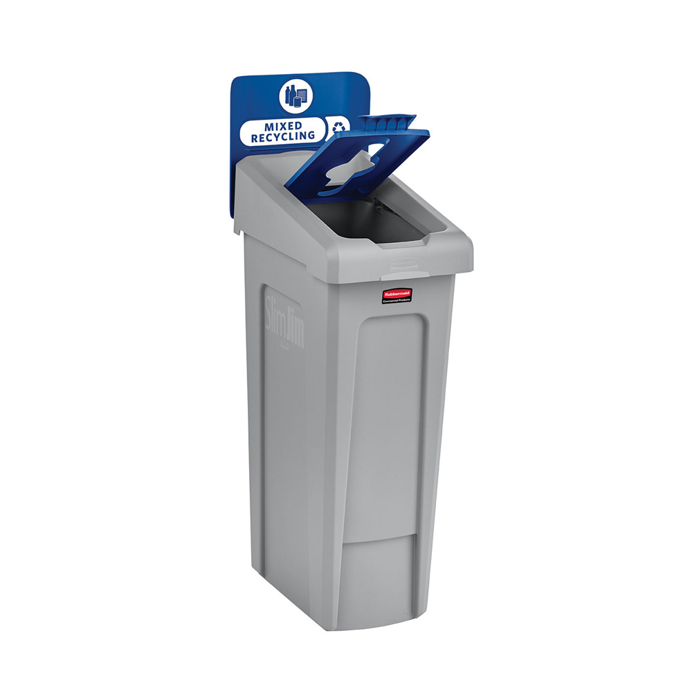 The Slim Jim Recycling Station 1-Stream Mixed Recycling unit combines clean front-of-house design with durable back-of-house performance. It connects with the 33G Slim Jim Recycling Station to build a custom recycling setup. With intuitive lid openings, snap-in components, and label visibility, it helps streamline sorting and supports facility recycling efforts.