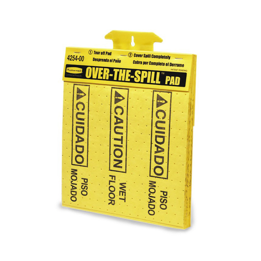 Over the Spill Pads Tablet provides a quick and effective way to handle spills while alerting pedestrians to wet floor hazards. Each pad absorbs water or oil fast and resists slipping for safer cleanup. The corrugated plastic backing mounts easily to flat surfaces or floor signs for convenient access.