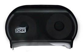 "The Tork Twin Bath Tissue Roll Dispenser is the ideal solution for any high traffic environment. This dispenser solution helps to reduce maintenance costs by decreasing the frequency that the dispenser needs to be refilled and fewer service interruptions to be experienced by your patrons. Clean, modern appearance compliments any environment; Translucent cover allows for at a glance inspection for refills; Smooth cover is easy to clean and maintain; Built-in pilferage control; High impact plastic and design help prevent breakage. ADA Compliant."