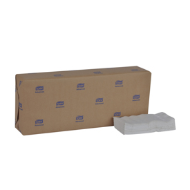 "The embossed facial quality 2-ply Tork Advanced Dinner Napkin brings class and practicality to casual dining. This economical napkin is ideal for high-volume applications. The exclusive taller styling allows silverware to rest on it with little or no overhang. Available for custom print; 75% of the napkin users notice the print. Bag packaging ensures napkins are always fresh and sanitary. Made from 100% recycled and 20% Post Consumer fibers offers environmental benefits, a positive image builder and is compostable.ECOLOGO(R) Certified Independent Verified and Certified Compostable by BPI"