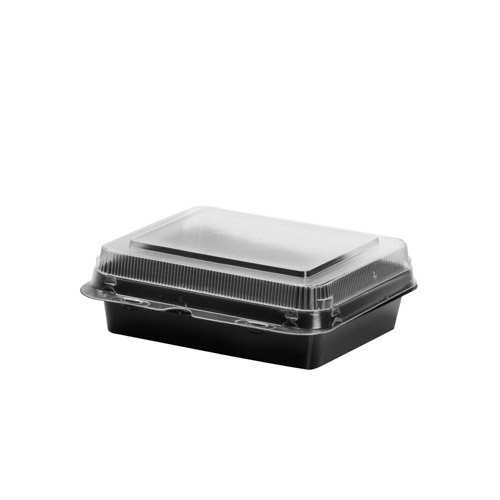 Black base and clear hinged polystyrene plastic snack box provide an attractive package and easy to close lids.
