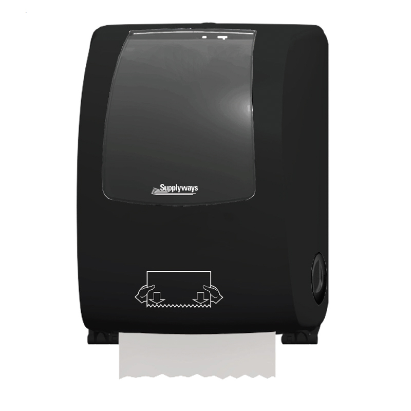 The Supplyways Mechanical No-Touch Hard Roll Towel Dispenser provides hands-free towel dispensing to support hygiene in high-traffic restrooms and facility washrooms. Its mechanical no-touch design helps minimize contact while controlling towel usage to reduce waste. The smoke finish delivers a clean, modern appearance suitable for commercial environments.