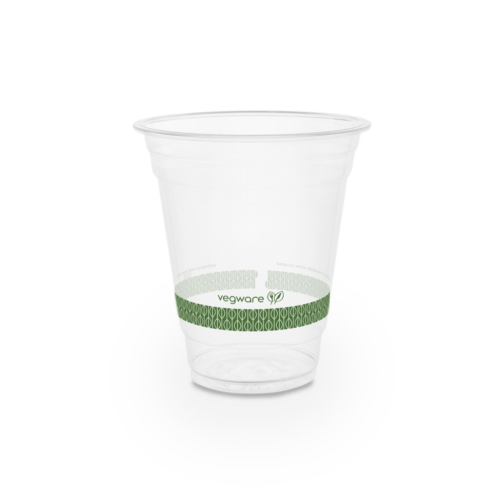 12OZ PLA CLR CLD CUP PLNT BASED W/ GREEN STRIPE 1M/CS R360Y-G