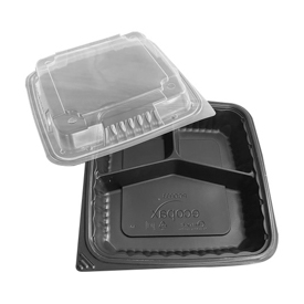 9X9 3 COMPRT PP CONT CLR TOP BLK BASE 150/CS PCO993-BK 150